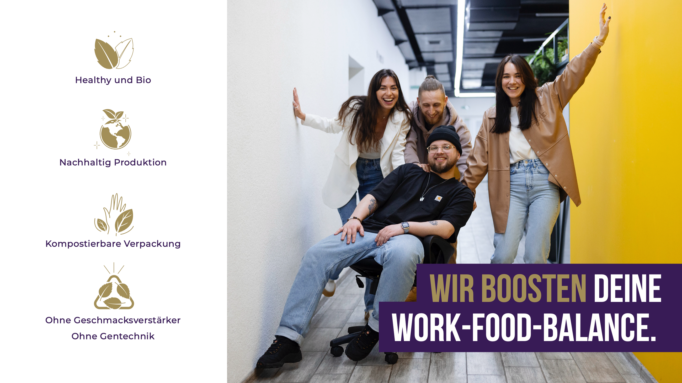 Unsere Mission ist es euch die leckersten Snacks für den täglichen Bürowahnsinn zur Verfügung zu stellen. So nachhaltig wie möglich und ganz nach euren Vorlieben. Super Healthy oder ein bisschen Schoko? Your Choice! Wir richten uns nach euch und euren Wünschen.